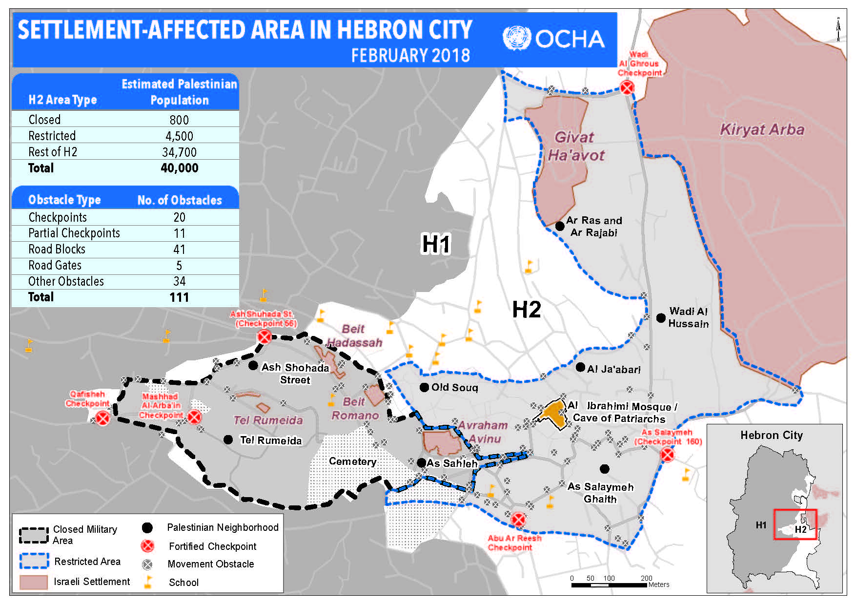 שטח העיר חברון שההתנחלויות פוגעות בו